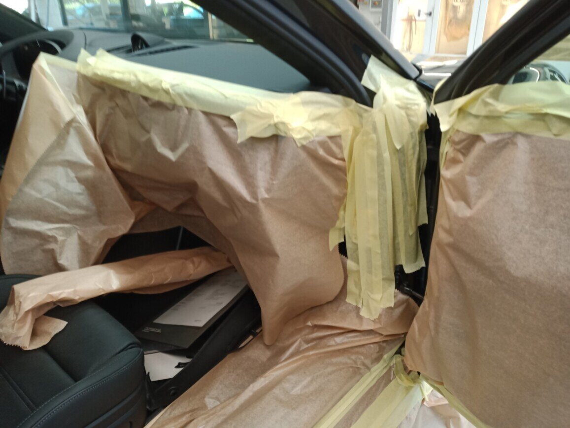 Die nachfolgenden Bilder zeigen die notwendigen Abdeckarbeiten bei einem Fahrzeug.