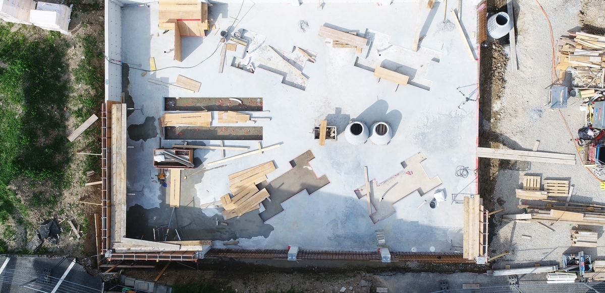 Die Bodenplatte ist aufgrund der abgedrehten, bodenebenen Lifte sehr kompliziert. Dafür werden wir nachher keine Stolperfallen haben und die Mitarbeiter können bequem jede Arbeit in gesunder Körperhaltung leisten. Übrigens: Mit dem Zusatzgebäude verfügt unser Betrieb insgesamt über 19 Lifte!