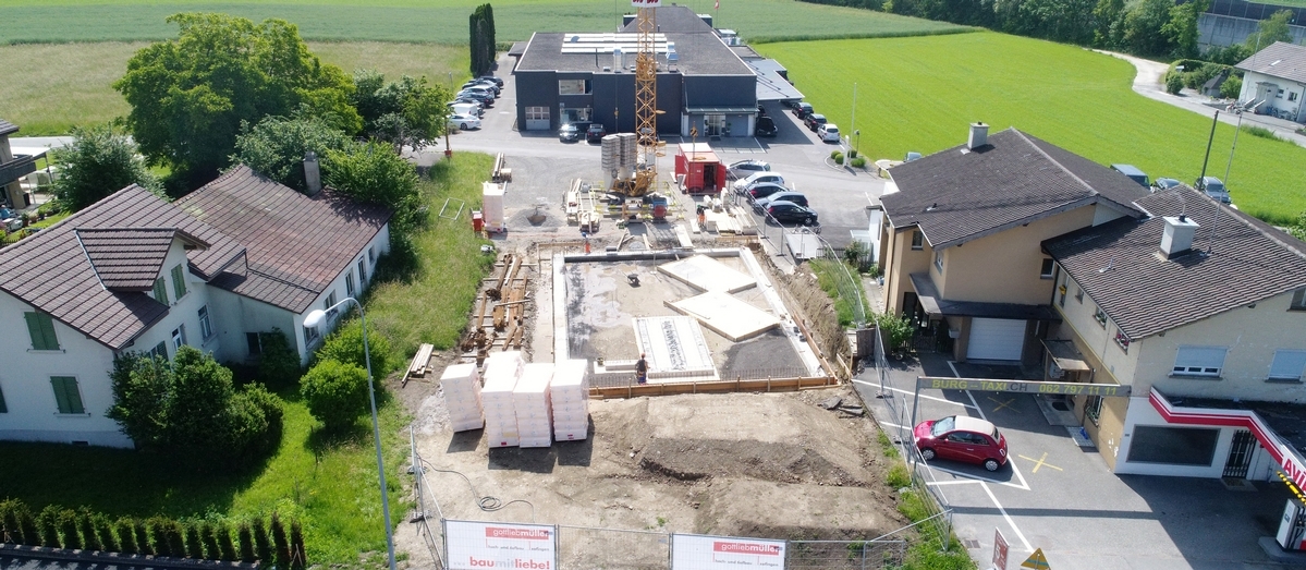 Auch Gewerbebauten müssen nach neusten Richtlinien gebaut werden. Dazu gehört das Isolieren der Bodenplatte. Das Gebäude erreicht quasi Minergiestandard!