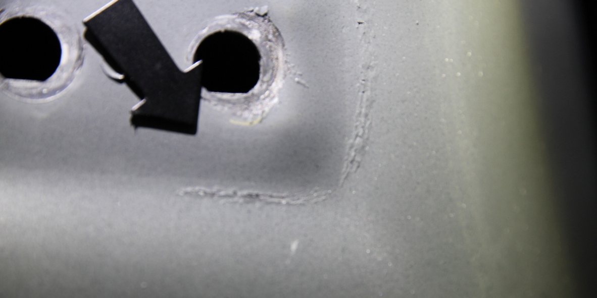 Die innere Verstärkung besteht aus ultrahochfestem BOR-Stahlblech und darf nicht gerichtet werden. Dank der elektronischen Vermessung wurde die Abweichung festgestellt.