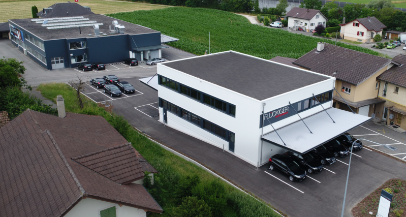 Die Firma hatte weiterhin Erfolg und platzte schon bald aus allen Nähten. Ein effizientes Arbeiten wurde zunehmend schwieriger, zumal die beiden Abteilungen Spenglerei und Lackiererei nicht auf einer Ebene waren. Christoph Flückiger hatte zwischenzeitlich seine Lehre abgeschlossen, eine Handelsschule absolviert und sich bereits in der Vorbereitung auf die Meisterprüfung befunden. Auch seine Freundin und heutige Ehefrau Tiziana trat in die Firma ein und kümmerte sich um Fakturierung und Buchhaltung. Grund genug, um die weitere Entwicklung der Firma anzugehen. Nach einer intensiven Planung erfolgte 1983 der Spatenstich für den Neubau.