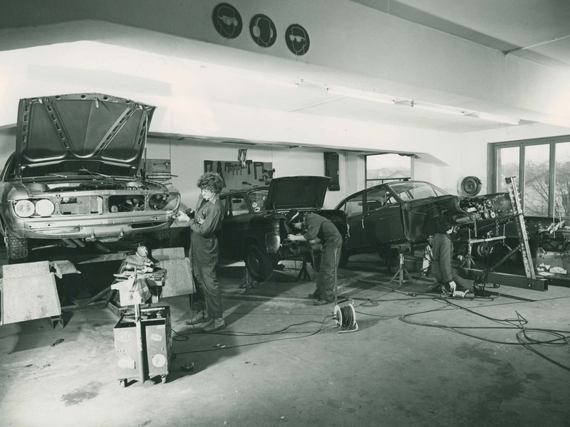Erfolgte die Umwandlung der Carrosserie H. Flückiger in die Carrosseriewerk Flückiger AG. Mit der Gründung der Aktiengesellschaft wurde die Basis für eine Nachfolgeregelung geschaffen. Dies nachdem klar war, dass Christoph Flückiger seinen Bildungsweg so gewählt hat, dass eine Weiterführung des Betriebes sichergestellt ist. Ein Blick in die Werkstatt zeigt die, für damalige Verhältnisse, moderne Einrichtung der Firma.