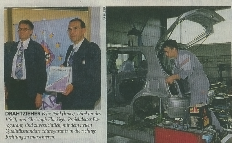 Das Qualitätssicherungssystem Eurogarant wurde in der Schweiz eingeführt. Christoph Flückiger war als Initiator und Projektleiter für die Planung und die Umsetzung von Eurogarant in der Schweiz verantwortlich. Auf dieser Basis wurden die ersten 9 Betriebe in der Schweiz zertifiziert. Gegenüber dem deutschen Basisprojekt erhielt der schweizerische Eurogarant eine umfassende Erweiterung. Kernstück und ein Novum war die Kontrolle von ausgeführten Arbeiten durch TÜV-Süd und Swiss TS (Prozessteil nach ISO 9001). Christoph Flückiger leitete Eurogarant als Präsident. Fünf Jahre später hatte Eurogarant 15 Mitglieder. Im 2003 beschlossen die Mitglieder, eine Interessengesellschaft ausserhalb des Branchenverbandes zu bilden und gründeten die IG Swissgarant.